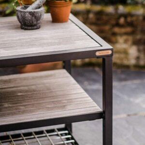 Het Acacia houten plateau grijs – Modular Outdoor Workspace is een stuk outdoor meubilair dat speciaal is ontworpen om te dienen als een werkplek of serviesstation tijdens het barbecueën.