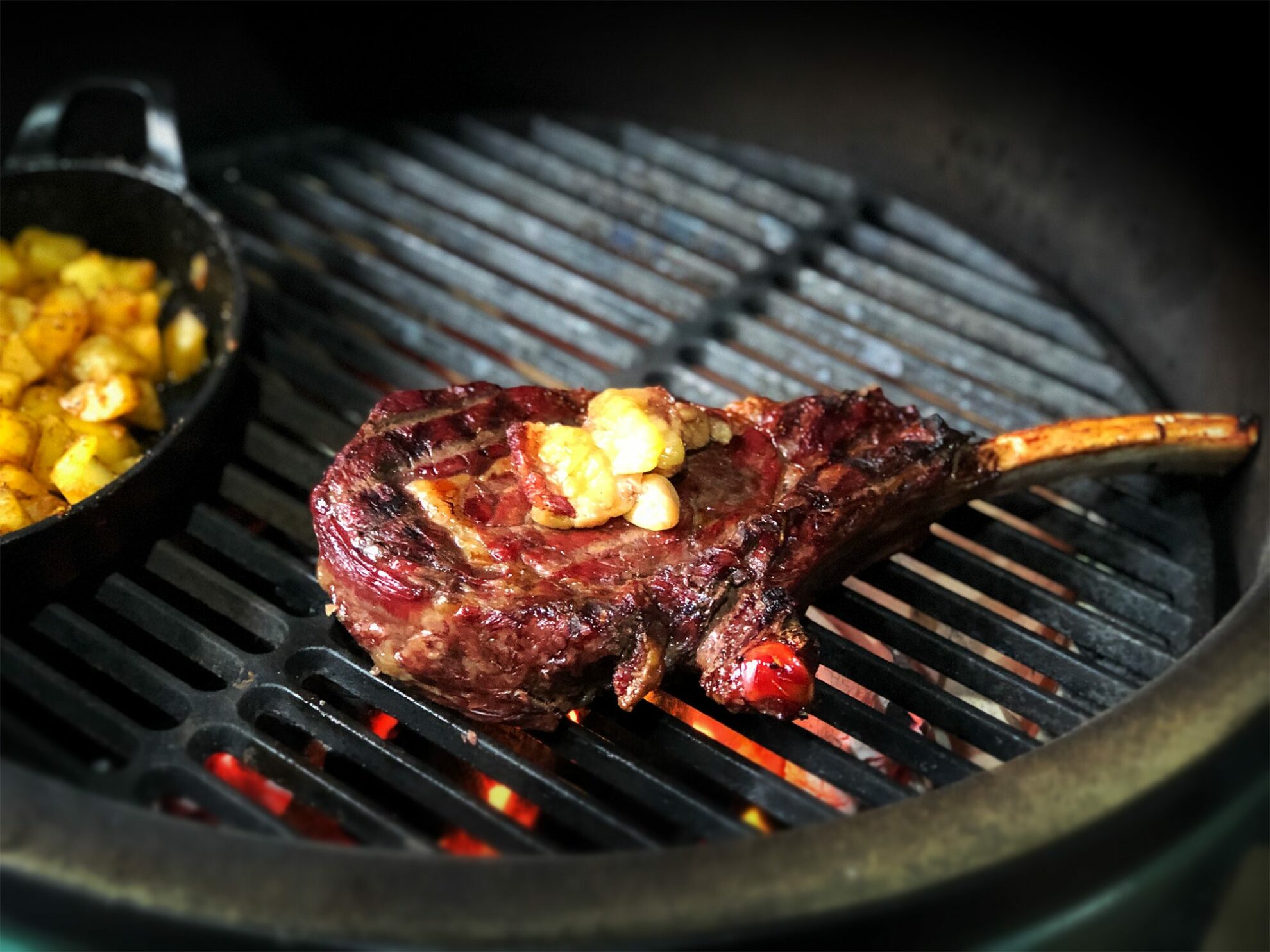 Een heerlijke steak, daar word iedere pitmaster vrolijk van! Door verschillende barbecue technieken te combineren, ontstaat er een verfijnde smaak combinatie. Low and slow, reverse sear & draperen voegen we samen. Low and slow om het vlees en het vet zo mals mogelijk te krijgen door het heel rustig te garen. Reverse sear voor de perfecte kerntemperatuur en het draperen met roomboter om zo vocht toe te voegen aan het vlees. Vul de steak aan met een lekkere groente en je bent klaar!