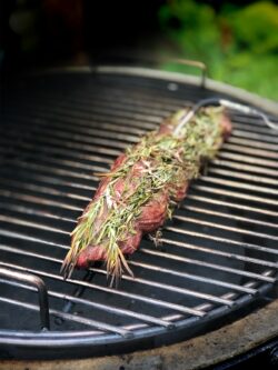 Zodra het vlees de gewenste kerntemperatuur heeft bereikt, haal je het van de BBQ en laat je het even rusten. Verhoog vervolgens de temperatuur van de BBQ tot een hoge temperatuur van ongeveer 250 graden Celsius en leg de ossenhaas terug op de BBQ. Gril het vlees kort aan beide zijden om een mooie korst te krijgen.