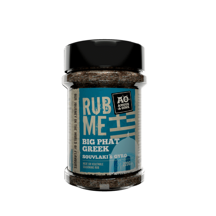 De Angus & Oink Big Phat Greek bevat zout, suiker, zwarte peper, knoflook, dille, peterselie, selderijzout, citroenpoeder, uienpoeder, rode paprika, tijm, oregano, kaneel, gerookt paprikapoeder en rozemarijn.