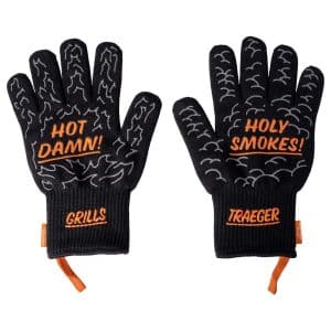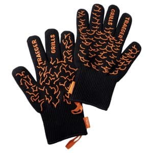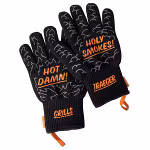 Met de Traeger BBQ handschoenen sta je met vertrouwen boven het vuur. Deze hittebestendige handschoenen beschermen je handen en onderarmen tijdens het grillen, of je nu een gietijzeren pan verplaatst, een rooster optilt of een hete schaal uit je grill haalt.
