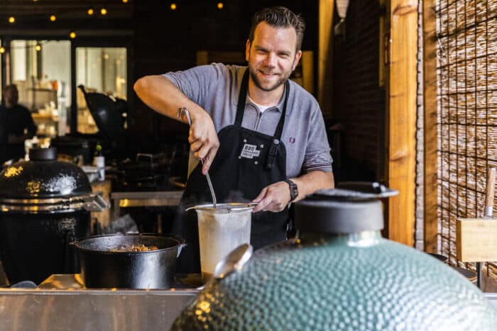 Het is namelijk niet zomaar een BBQ workshop waar we een mooi bier bij de gerechten pairen, nee we gaan echt samen op zoek naar de samenhang tussen bier en BBQ. Uiteraard kun je een bier in een stoofgerecht verwerken, en een bierbeslag is ook wel bekend (en zijn daarom niet minder lekker). Maar wat wanneer we wat verdieping zoeken? Bijvoorbeeld met het maken van een dressing met gemalen hop, en diezelfde hop gebruiken in het bier wat je erbij serveert? Of mout gebruiken als ingrediënt in je gerecht in plaats van linzen? Niet alleen een tof verhaal, maar ook echt bijzondere smaken! En dat is precies wat centraal staat in deze workshop.