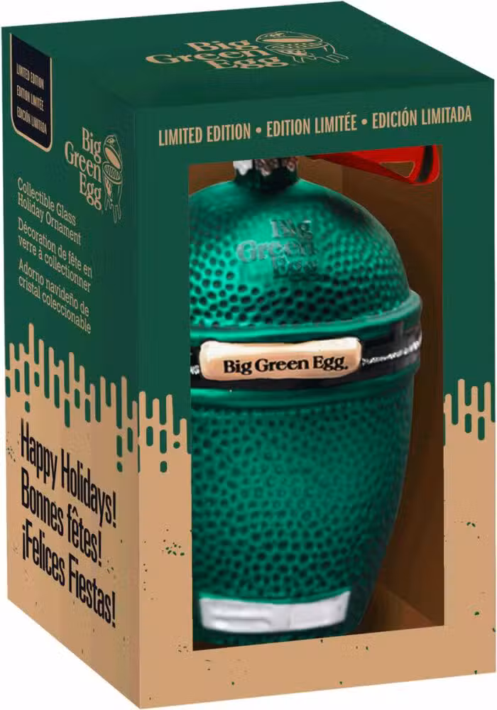 De Kerstbal kerstmis ornament Big Green Egg is gemaakt van hoogwaardig glas, met een gedetailleerd design van de iconische BBQ merk, Big Green Egg.