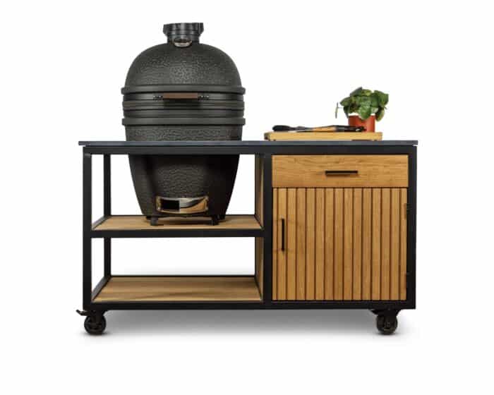 Het frame van de Buitenkeuken Austin Signature + Bastard Large is gemaakt van zwart staal dat dubbellaags is gepoedercoat voor extra bescherming tegen de elementen.
