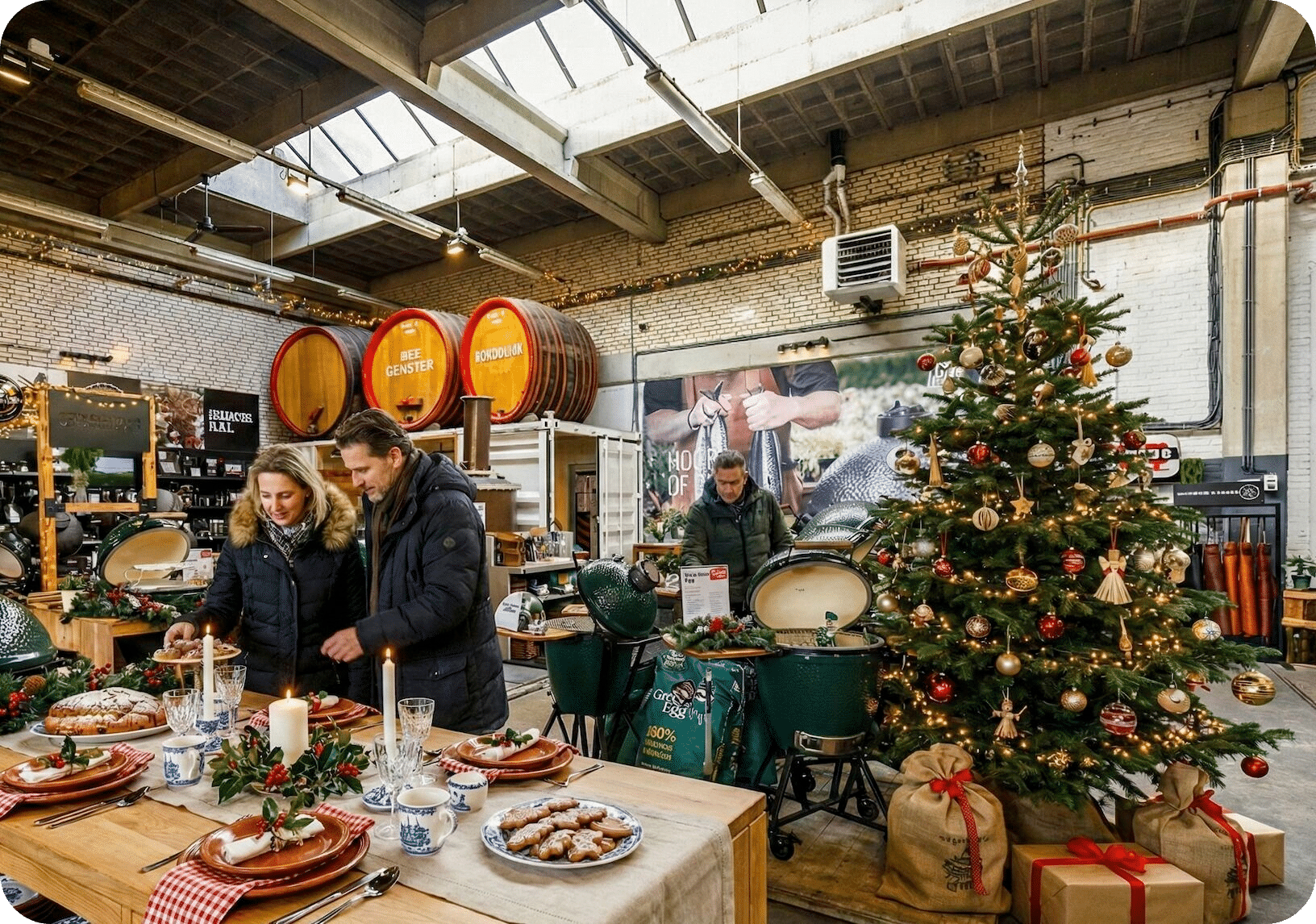 Op vrijdag 19 december maken we van BBQ Experience Center Nunspeet een warme, gezellige kerstavond vol vuur, smaak en goede gesprekken. De deuren blijven tot 22:00 uur open en de hele winkel ademt feestdagen en BBQ-inspiratie.