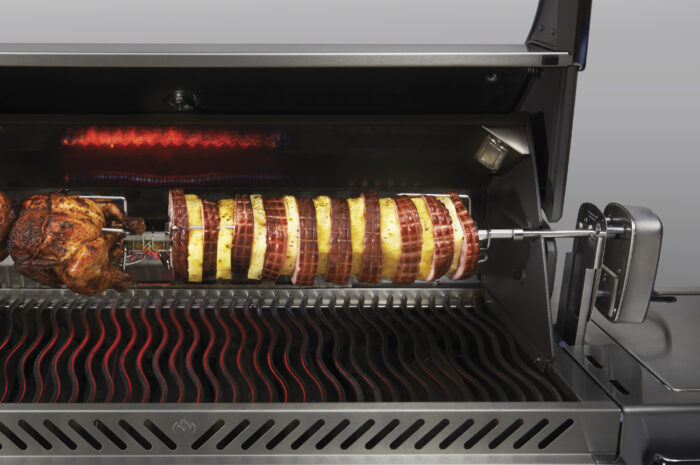Het Commercial Quality Draaispit Lex 485 en Pro 500 Napoleon is een accessoire voor de BBQ, speciaal ontworpen voor het gelijkmatig grillen van groot vlees.