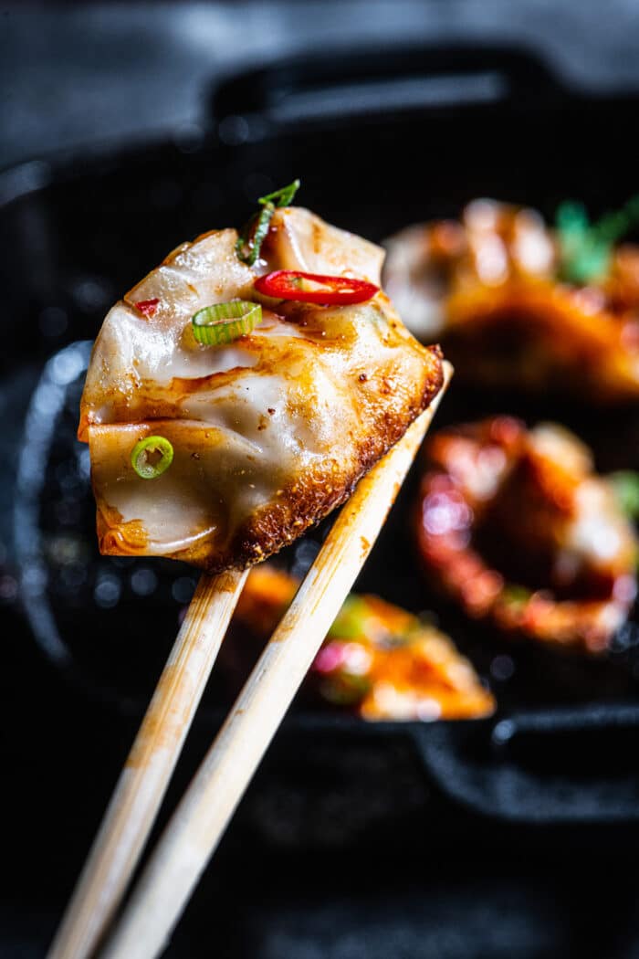 Gebakken gyoza uit de skillet