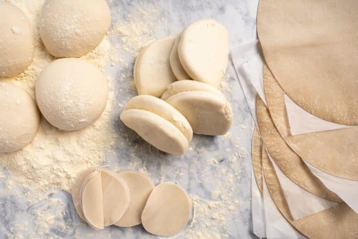 De ultieme deegbox bevat vier soorten deeg: pizzadeeg, flammkuchen bodems, bao buns, en gyoza vellen.