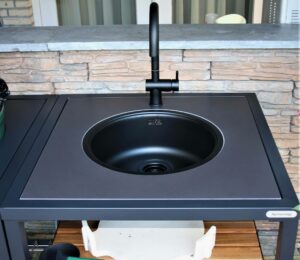 Ja, de Dekton natuursteen wasbak insert groen maakt deel uit van de Modular Outdoor Workspace-lijn van Big Green Egg.