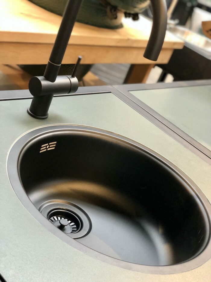 De Dekton natuursteen wasbak insert groen is ontworpen voor het merk Big Green Egg.