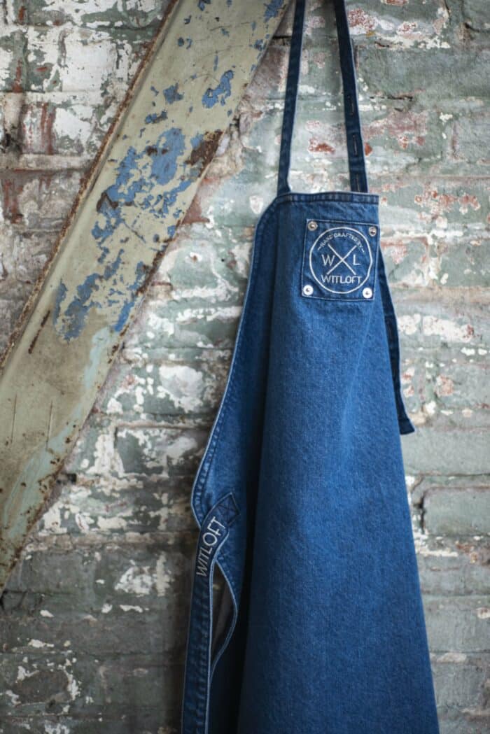 De Denim schort blauw Witloft is verkrijgbaar in twee lengtematen: 75cm en 85 cm.
