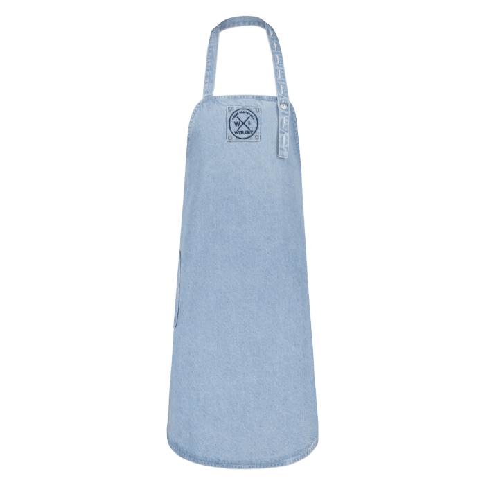 De Denim schort lichtblauw Witloft is verkrijgbaar in twee lengtematen, namelijk 75cm en 85cm.
