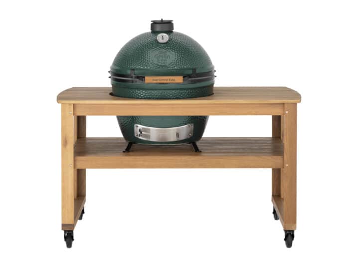 Je plaatst de Big Green Egg altijd in een Table Nest op de Eucalyptus tafel Big Green Egg voor de nodige luchtcirculatie.