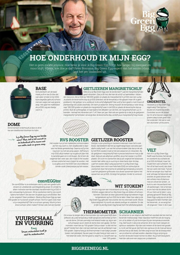 Het is geen rocket science. Hoe beter je voor je Big Green Egg zorgt, hoe langer hij meegaat en mooi blijft. Alleen, hoe doe je dat? Peter Bootsma van Big Green Egg Nederland legt het per onderdeel uit. Super handig, de tips zijn ook als download beschikbaar!