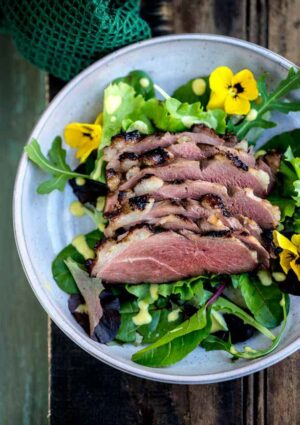 Geroosterde eendenborst heeft een rijke, rokerige smaak van de barbecue, gecombineerd met het vette en malse vlees van de eend. Het is een ware smaaksensatie!