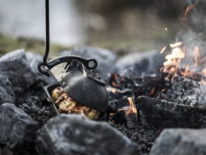 Wanneer de Gietijzeren Aardappel Oven Petromax in het vuur ligt, kun je hem met een deksellifter en de handige ring aan het sluitingsmechanisme gemakkelijk uit het vuur halen.