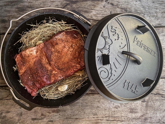 Een Petromax Dutch Oven heeft ook nog wat verborgen functionaliteiten. De deksel en pan zijn voorzien van een handige (mini) gleuf voor thermometers en lucht/vocht afvoer, draai de deksel om de gleuf te openen en te sluiten. Ook is de deksel voorzien van pootjes waardoor de deksel op zich al gebruikt kan worden als grillpan wanneer je hem omdraait. Ook is de pan voorzien van een handig hengsel om de pan op te hangen boven een warm vuur. Zet de pan in zijn geheel op de kop en gebruik de pan als pizza-oven.