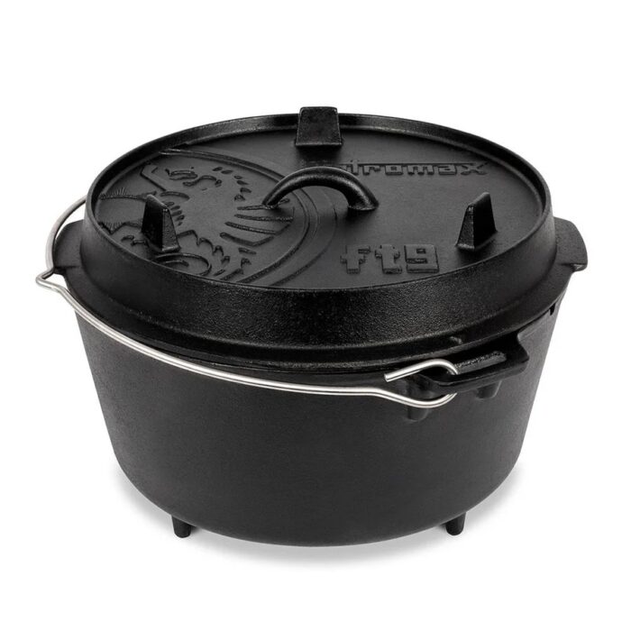 De Originele Petromax Dutch Oven is bij uitstek geschikt om in te koken en bakken in binnen en buitenlucht. De FT9 is een ruime grote pan van 7,5 Liter, waar je voor redelijke groepen op kan koken. Een heerlijke stoofpot of soep smaakt het beste uit deze gietijzeren pan. De pan is dan ook geschikt voor gerechten voor 8-14 personen.