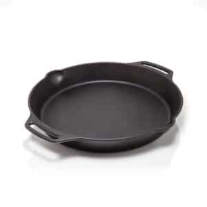 Deze Skillet heeft een diameter van 35 centimeter en een gewicht van 4.4kg. Al met al een aardig grote pan die uiterst geschikt is om voor relatief grote groepen mensen koken.
