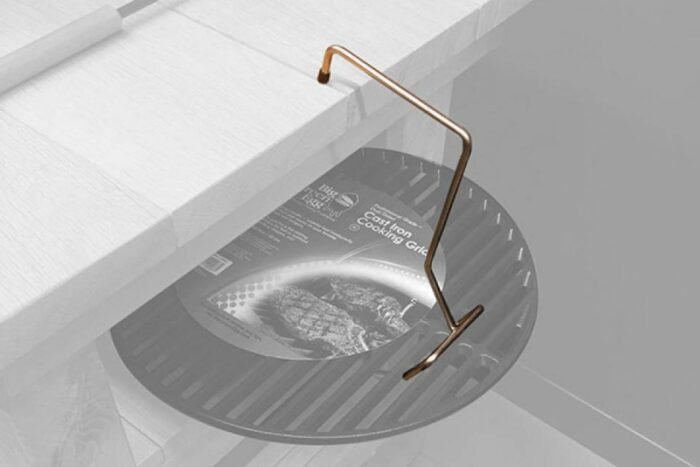 Je gebruikt de Kick Ash Basket Grate Hook om je Kick Ash Basket of rooster uit je barbecue te tillen. Je kunt het rooster ook dichtbij ophangen met behulp van de haak.