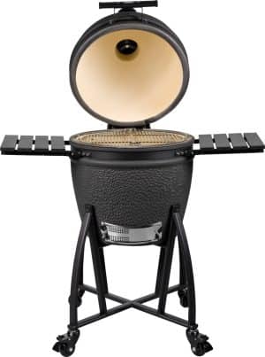 De Grill Guru Prime Large is het nieuwe en verbeterde model binnen de Grill Guru-serie. Deze complete kamado met een grill oppervlakte van ø 46 cm wordt geleverd met een multilevelsysteem, regenhoes en aspook, zodat je direct alles in huis hebt om je premium bbq avontuur te beginnen. Vernieuwd met een duurzamer frame, een verbeterde thermometer en grotere zwenkwielen voor extra gebruiksgemak.