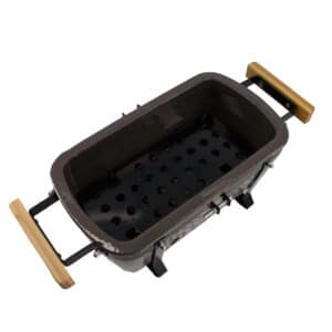 De body van de grill is volledig gemaakt van keramiek en zit in een stevig metalen frame met poedercoating. Daarnaast bevat het twee stijlvolle bamboe handvaten voor extra draaggemak.