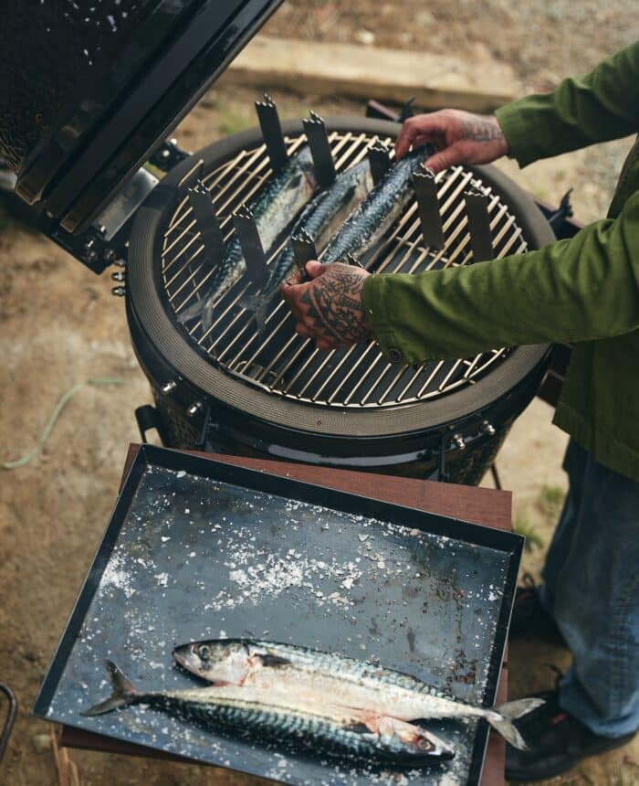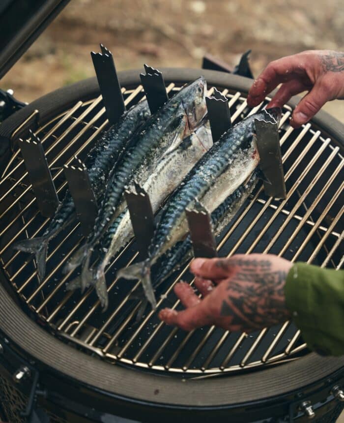 De Grill pins The Bastard kunnen gebruikt worden om een gerecht rechtop te zetten, zoals bijvoorbeeld Spareribs of vis. Door het gerecht tussen de grill pinnen of tegen de pinnen aan te zetten kan je het gerecht volledig rondom geleidelijk grillen.