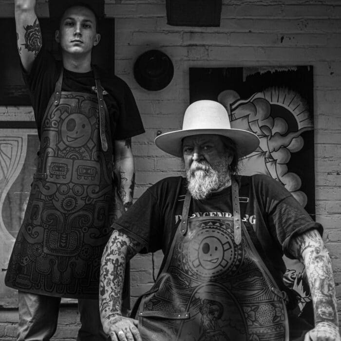 Wat de Henk Schiffmacher x Witloft | Barbacoa uniek maakt is dat deze is bedrukt met een exclusieve Schiffmacher tatoeage.