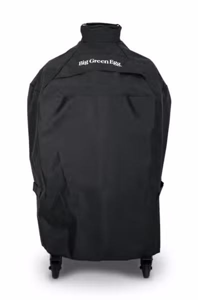 Voor de Big Green Egg Mini past de ‘Hoes cover Big Green Egg alle uitvoeringen’ met nummer 126511 die speciaal ontworpen is voor het EGG Carrier model.