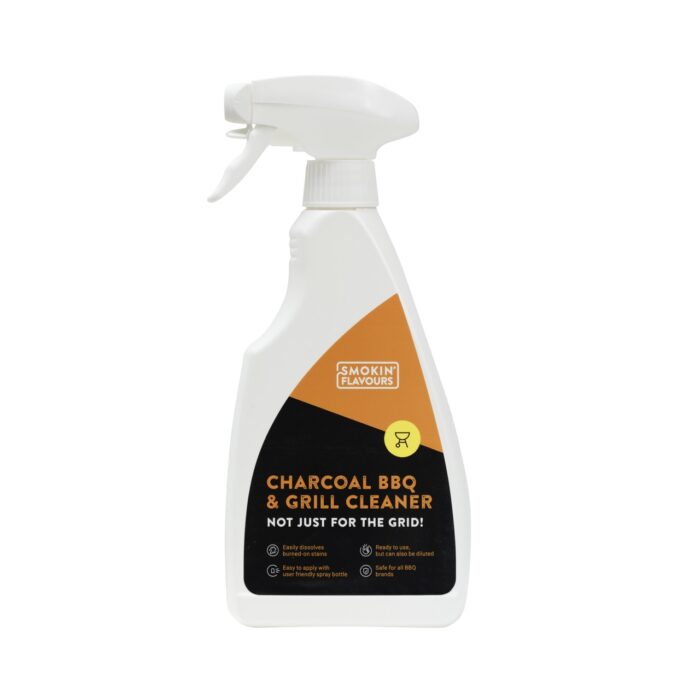 De Houtskool BBQ grill reiniger Smokin’ Flavours lost ingebrande vlekken gemakkelijk op. De reiniger is gebruiksklaar, maar kan ook worden verdund. Na gebruik moet je het goed naspoelen. Het is gemakkelijk aan te brengen en zit in een gebruiksvriendelijke spuitfles. Het is veilig voor alle BBQ merken.