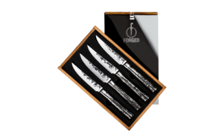 De Intense Forged 4 steak knifes is een set van vier steakmessen. Ze zijn vervaardigd van Japans staal en hebben met de hand gesmede accenten. De messen hebben een gehamerde look en zijn verpakt in een luxe houten kistje.
