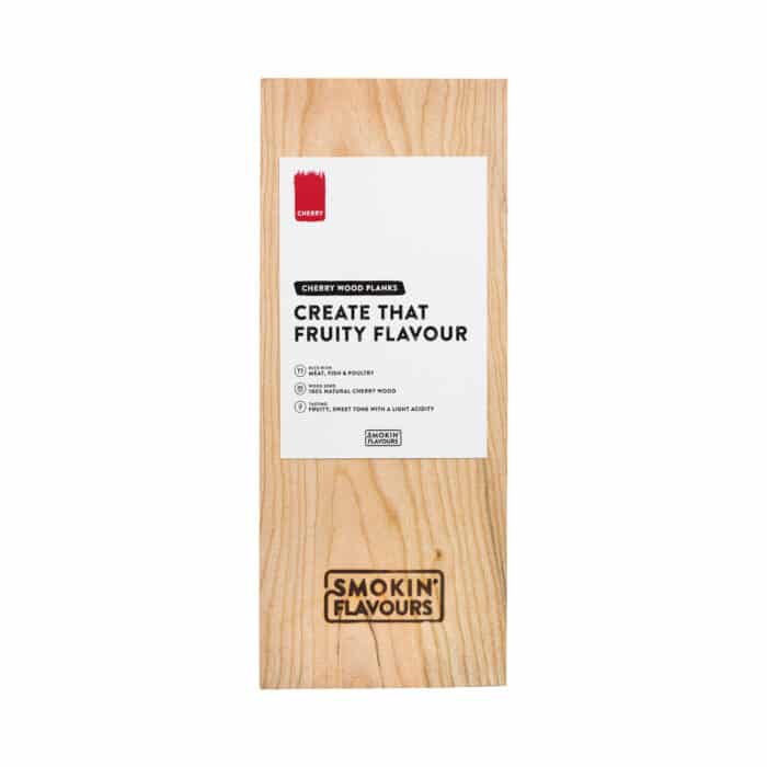 Het kersenhout van de Kersenhouten rookplankjes 2 stuks Smokin’ Flavours geeft een fruitige, zoete smaak met een licht zuurtje aan het gerecht.