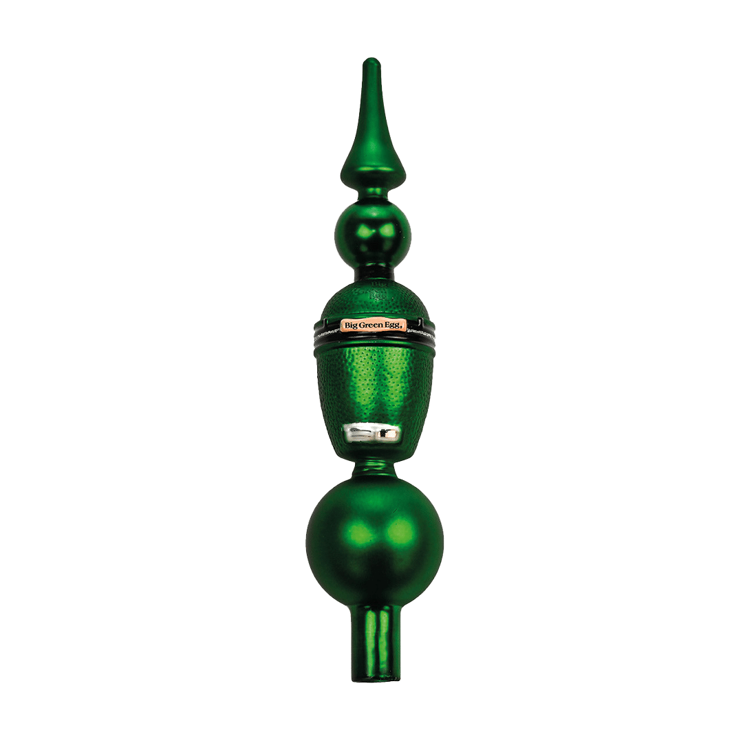 De Kerstboom piek Big Green Egg is gemaakt van glas.