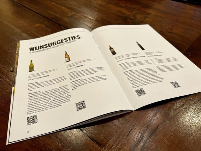 Het dessert in het Kerstmenu 2021 magazine is de Tartelette van harde wener, met een vulling van praline, geslagen room en rood fruit.