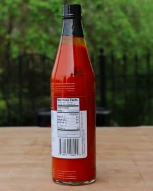 De Killer Hogs – Hot Sauce bevat gerijpte paprika puree, azijn, knoflook, zout en cellulosegom.