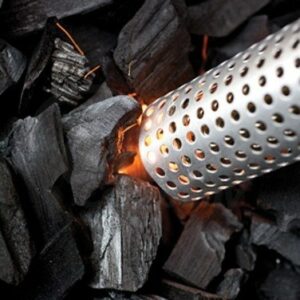 Je houdt het einde van de Looftlighter net niet tegen de kolen tot deze gaan vonken. Bij de eerste vonkjes trek je de Looftlighter 10-15 cm naar achteren terwijl je de knop ingedrukt houdt. Dit maakt je bbq binnen 3 minuten volledig heet.