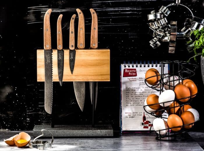 Het Magnetisch messenblok eik is gemaakt van eikenhout en natuursteen.