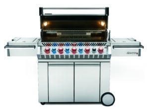 De Prestige PRO series zijn de topmodellen van Napoleon. De Napoleon Prestige PRO 665 is een gasbarbecue van serieus formaat en heeft nog meer grillruimte dan de Prestige PRO 500. De Prestige PRO 665 is uitgerust met maarliefst 5 hoofdbranders, 1 infrarood achterbrander en een infrarood SIZZLE ZONE zijbrander voor het dichtschroeien van gerechten. Een andere bijzondere optie is de ingebouwde SMOKER TRAY waar je rooksnippers in kunt doen voor een heerlijke rooksmaak aan je gerechten. De SMOKER TRAY is voorzien van een aparte brander. Het deksel van de Napoleon Prestige PRO 665 is voorzien van een LIFT EASE systeem voor makkelijke bediening. Barbecuen in het donker is voortaan ook geen probleem meer dankzij de binnenverlichting. Als je naar het bedieningspaneel kijkt van de Prestige PRO 665 valt gelijk de SAFETY GLOW verlichting op. Zo weet je precies welke brander in gebruik is en welke uit staat.