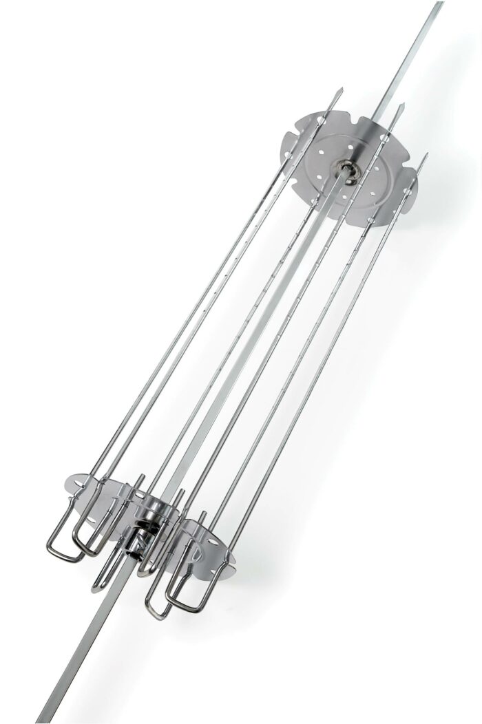 Het Napoleon Shish-Kebab draaiwiel is een handig hulpmiddel om voedsel gemakkelijk met sauzen te bestrijken terwijl het ronddraait. U schuift het wiel op uw draaispit en vult de extra lange spiesen met uw favoriete BBQ-gerechten.