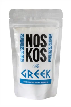 Noskos The Greek bevat zeezout, paprika, knoflook, ui, komijn, tijm, basilicum, oregano, plantaardige olie van raap, peper, cayennepeper en majoraan.