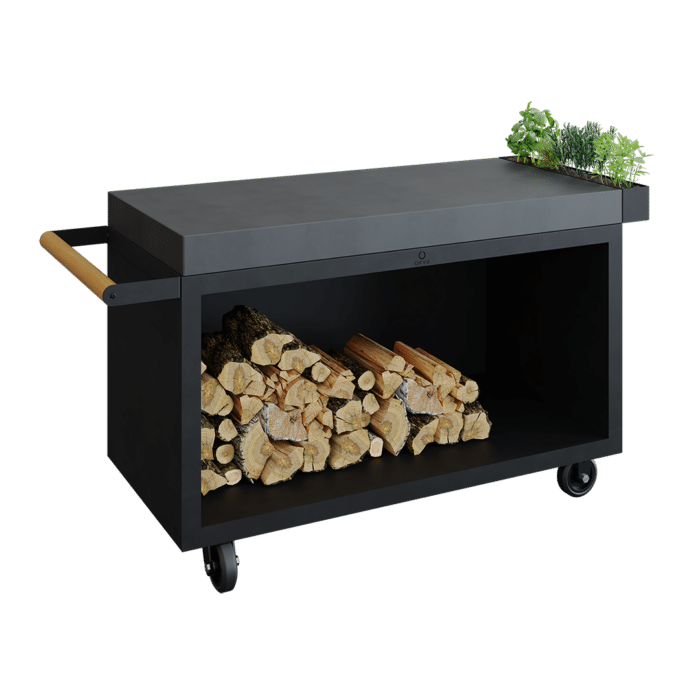 De OFYR 135 Mise en Place Table PRO Black met Donker Grijs Keramiek heeft een opslagcapaciteit van 0,45m³.