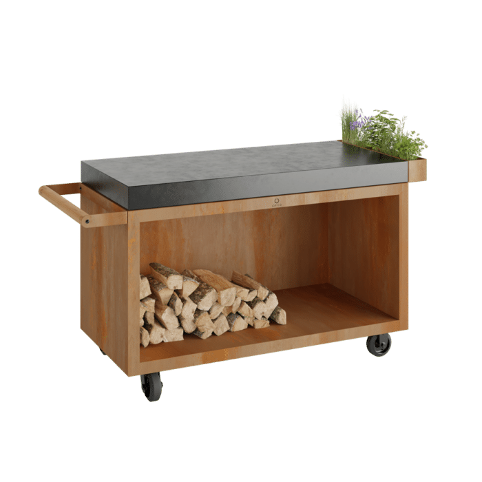 De OFYR 135 Mise en Place Table PRO Corten met Donker Grijs Keramiek heeft een opslag capaciteit van 0,45m³.