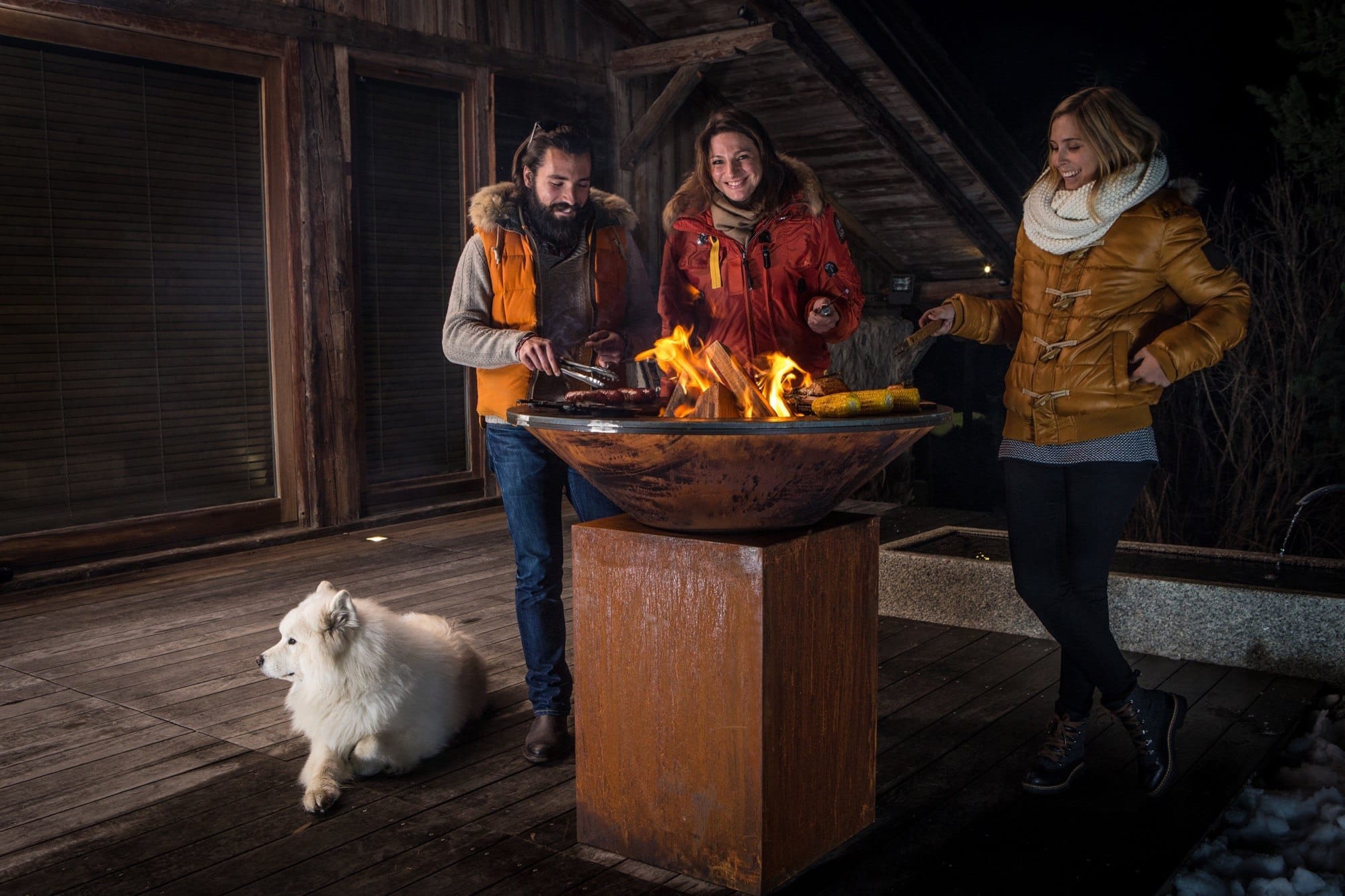 Wanneer je aan buiten koken denkt, denk je meestal aan een warme zomeravond. Maar zijn het niet juist de koudere dagen waarop we wat warmte kunnen gebruiken? Een gezellige avond bij het haardvuur lijkt ons de perfecte winteravond. De kegelvormige vuurschaal van de OFYR-kookunits geeft binnen een straal van twee meter aangename warmte af, zodat u zelfs in de koudere maanden buiten kunt koken en gezellig samen kunt zijn.