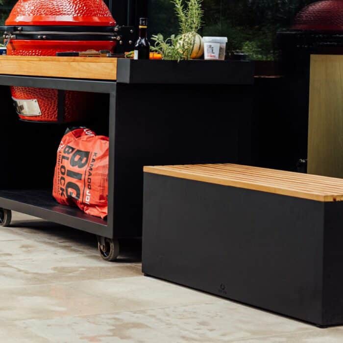 Het teak hout van de OFYR Garden Bench Black moet binnen bewaard worden en regelmatig behandeld worden.