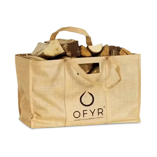 De Juten hout tas OFYR is ideaal voor het vervoeren en bewaren van houtblokken voor je OFYR barbecue.