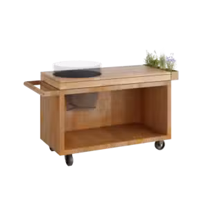Ja, de OFYR 135 Kamado Table PRO Corten is mobiel dankzij een handgreep en niet-geremde wielen. Let wel, hij wordt relatief zwaar wanneer gevuld met hout.