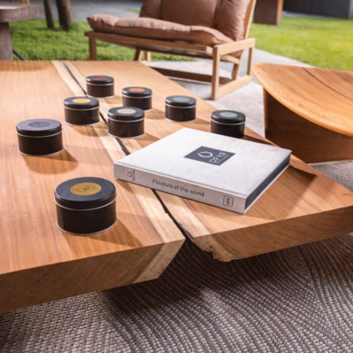 Bij het OFYR kookboek NO.2 krijg je acht zorgvuldig samengestelde kruidenmixen. Deze zijn gecreëerd door Guy Weyts en vormen de basis van de recepten in het kookboek.