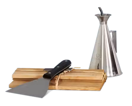 De Kookset 3 delig OFYR bevat doorgaans een spatel, tang en een reinigingsborstel. Deze zijn specifiek ontworpen voor het gebruik in combinatie met de OFYR barbecue.