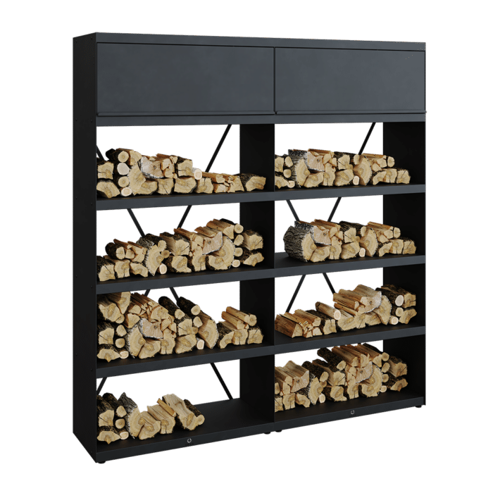 De OFYR Wood Storage 200 Black heeft een opslagcapaciteit van 2 m³.