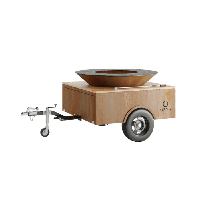 De OFYR Trailer is de perfecte kookunit voor je evenementen: gemakkelijk te vervoeren en heeft het formaat van een OFYR XL om epische maaltijden te bereiden voor maximaal 150 personen. De trailer is volledig getest en gecertificeerd. De aanhanger met trekhaak is afneembaar, evenals de houten blokken bovenop de aanhanger. Je hebt opbergruimte aan de voor- en achterkant, ideaal om je brandhout te vervoeren zodat je in een mum van tijd klaar bent om te gaan. Verkrijgbaar in cortenstaal.